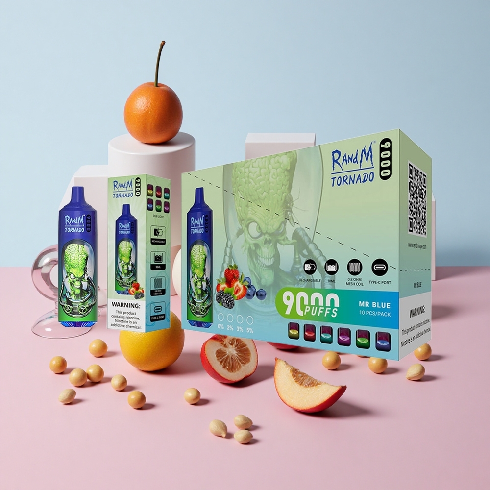 RandM Fumot Tornado 9000 Puffs 850mAh充電式 18mLメッシュコイル ブルー(Mr Blue)