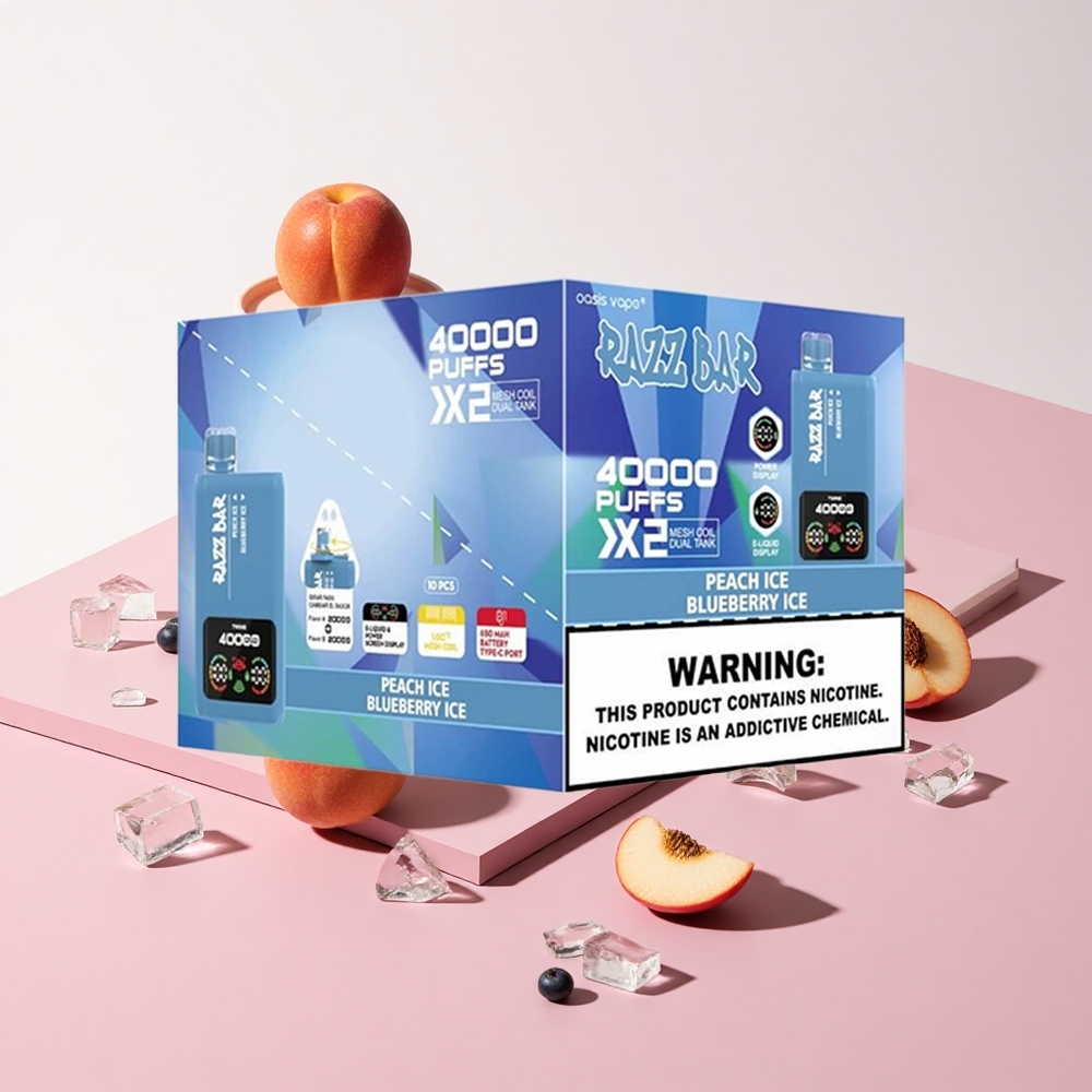 Razz Bar 40000 Puffs ピーチアイス&ブルーベリーアイス 1.0Ohm 2メッシュコイル 650mAhバッテリー