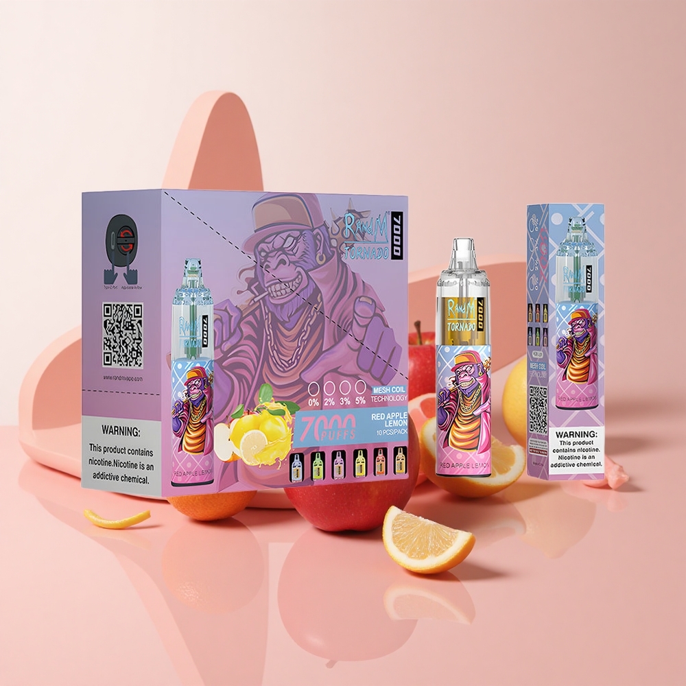 ホーム| 新シリーズ| RandM| RandM Fumot Tornado 7000 レッドアップルレモン 14ML Eリキッド メッシュコイル