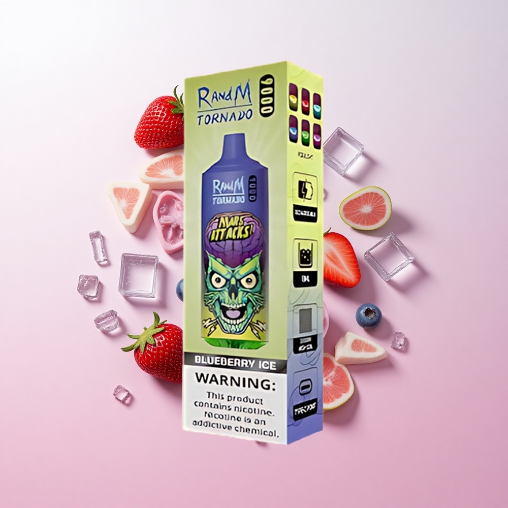 RandM Fumot Tornado 9000 Puffs リチャージャブル850mAhバッテリー&18mLメッシュコイル ブルーベリーアイス