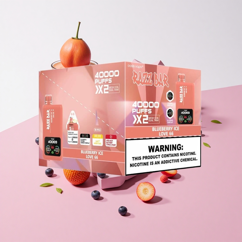 Razz Bar 40000 Puffs 使い捨てベイプ ブルーベリーアイス_Love 66 パワースクリーンディスプレイ 1.0オーム 2メッシュコイル
