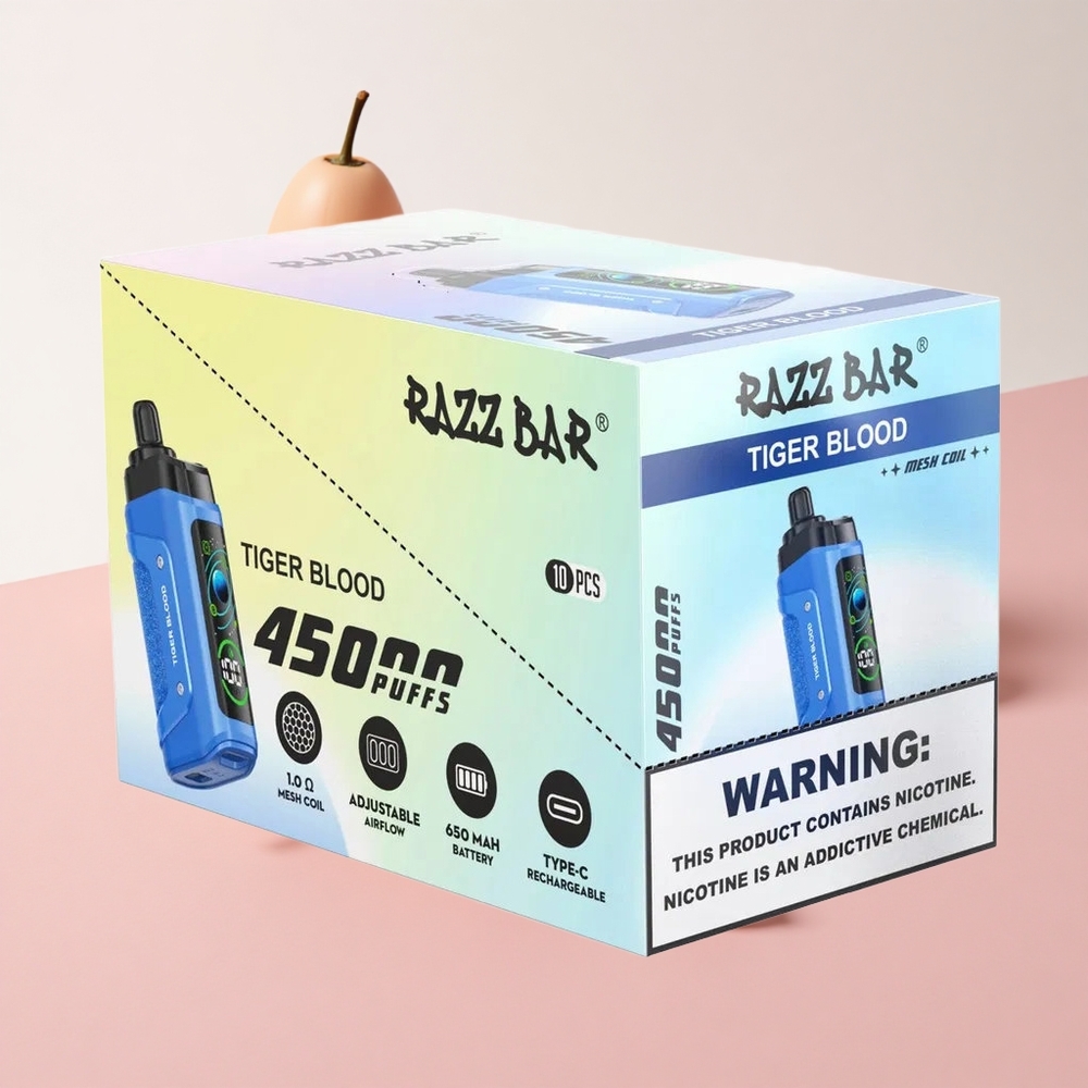 Razz Bar 45000 Puffs ディスポーザブルベイプ タイガーブラッド(メッシュコイル1.0オーム & タイプC充電式)