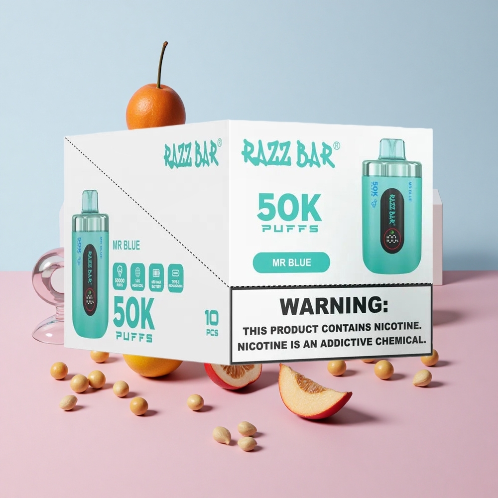 Razz Bar 50K Puffs 使い捨てベイプ ブルー 1.0オームメッシュコイル 650mAhバッテリー